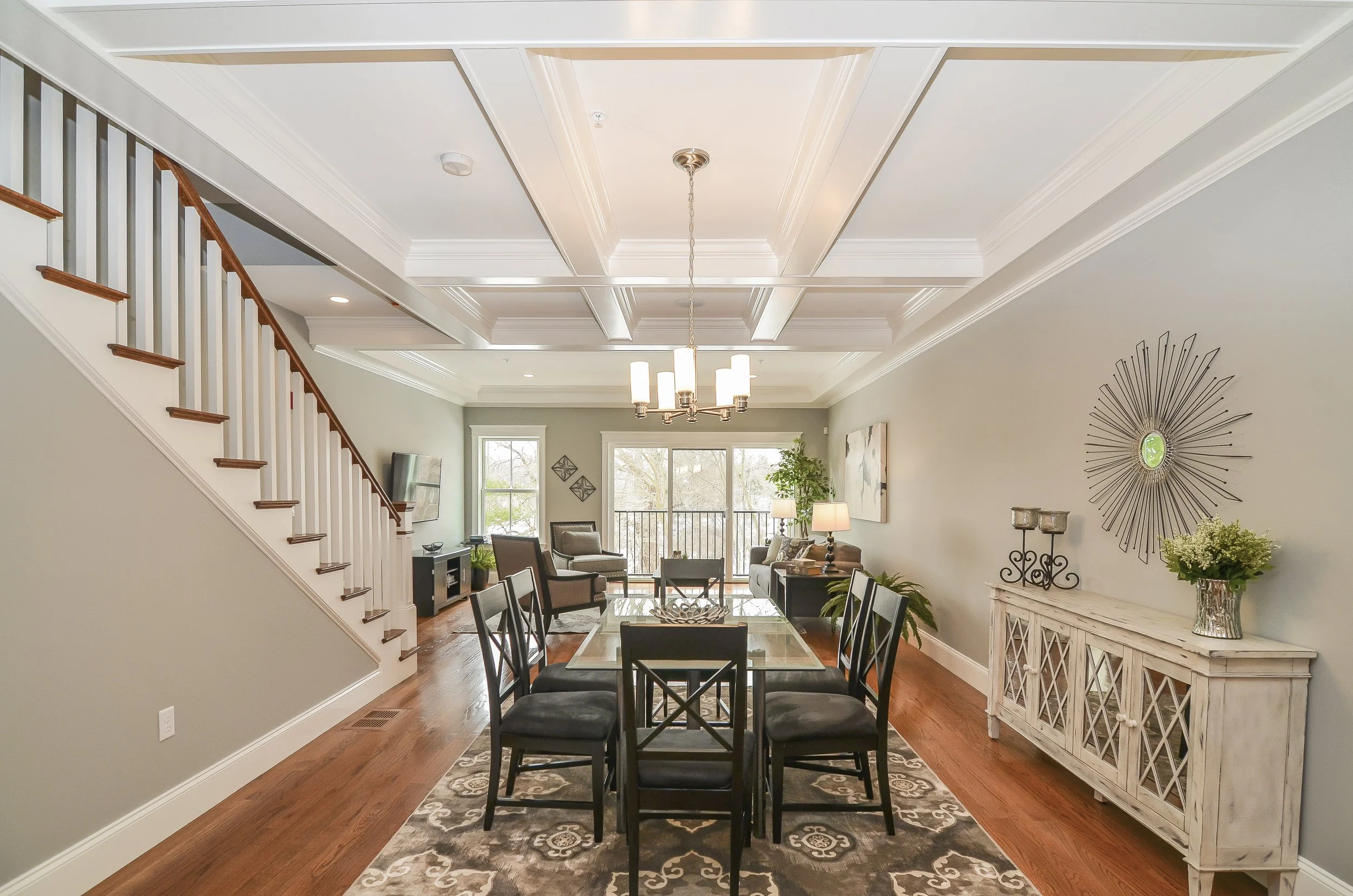 Each townhome is designed across 3 stories of living space, featuring an open concept kitchen / dining / living room, three bedrooms, and three and a half bathrooms. A family room on the top level opens up to a roof deck with outdoor kitchens and ample lounge area to enjoy panoramic views overlooking the Charles River.